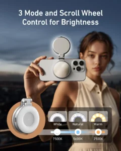 TELESIN C03 3-in-1 Magnetic Selfie Ring Light with Makeup Mirror & Integrated Phone Stand – CRI 97+ Pocket Fill Light for iPhone MagSafe & Android vlogging