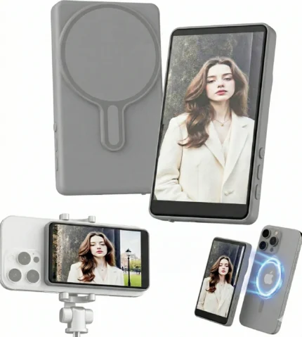 FMC Wireless Magnetic Selfie Monitor – 4K 30fps Real-Time Phone Mirroring Screen with Bluetooth Remote – Use Back Camera for Pro Vlogs & TikTok – iPhone & Android Compatible
