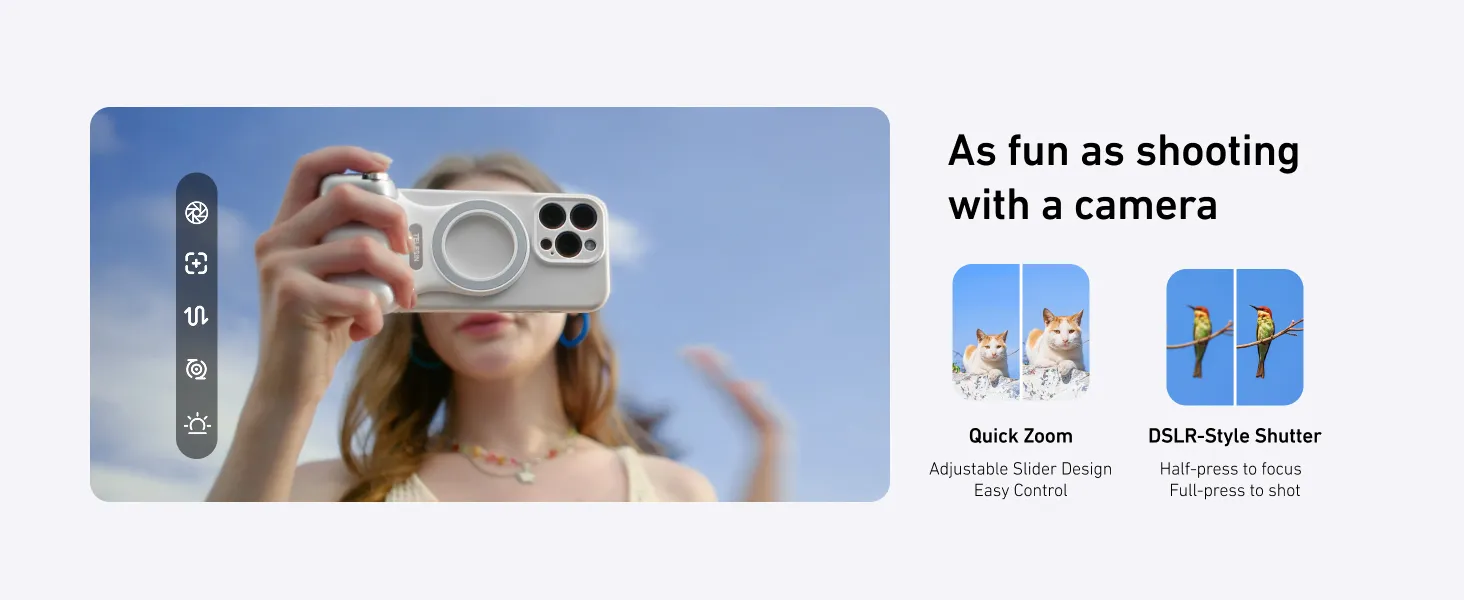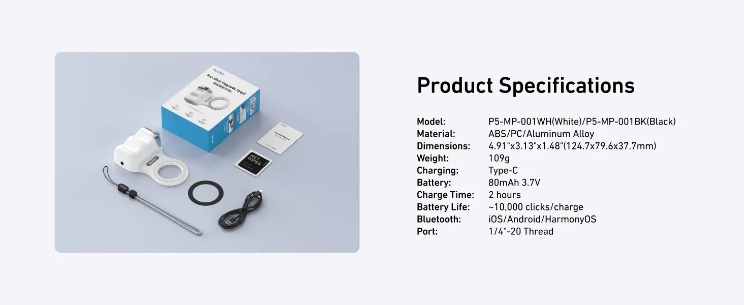 Transform your smartphone into a professional DSLR camera in seconds. The TELESIN Fun Shot Magnetic Grip 2 is designed to provide the ultimate stability and comfort for mobile photography and vlogging. With its ergonomic handle and powerful magnetic attachment, you can capture steady shots, one-handed selfies, and cinematic videos with ease.