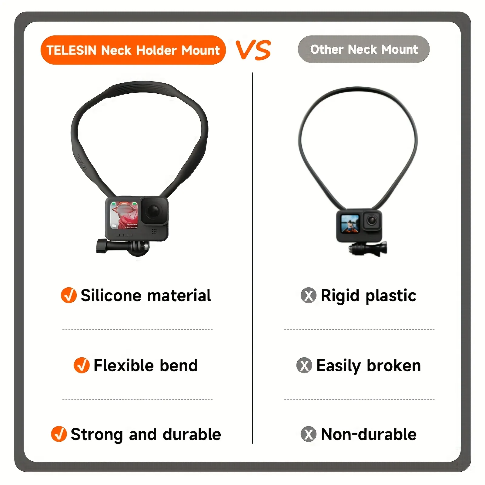 TELESIN Neck Holder Mount SE for GoPro, DJI Action & Smartphones – First-Person POV Silicone Neck Strap for Cycling, Fishing & Vlogging